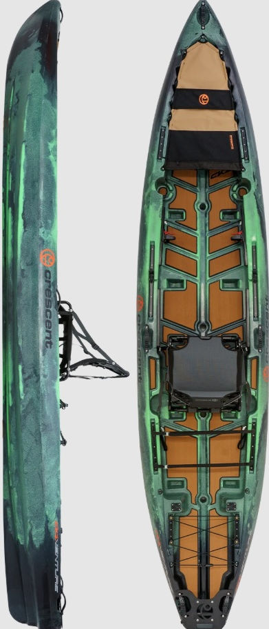 A 13 foot stability-focused hull that maintains Crescent Kayak’s signature paddling performance—performing well whether paddling or under power