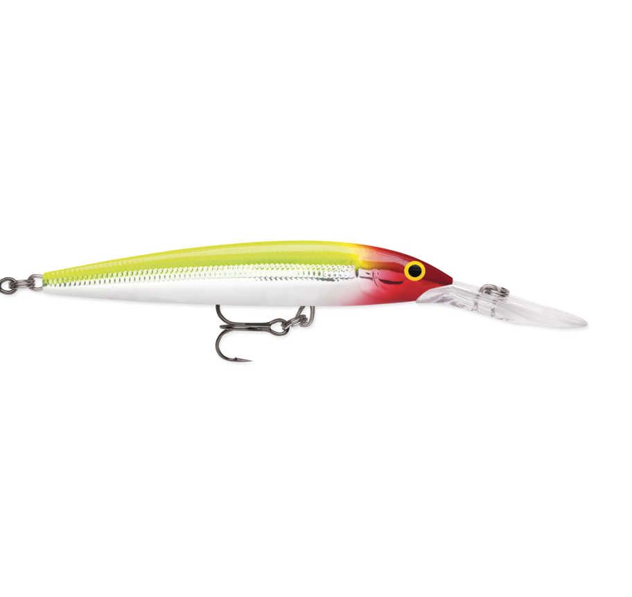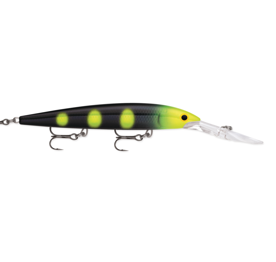 Thanks to its oversized deep diving lip, the Down Deep Husky Jerk® reaches depths of 20 feet when trolled and will run up to 10 feet deep when cast and retrieved. The perfect choice when you want a lure that runs straight and true, even when running fast and deep. Neutral buoyancy allows lure to suspend on pause in retrieve. Tuned internal rattle chamber creates loud and rhythmic attraction. Premium VMC® black nickel hooks. Each lure is hand-tuned and tank-tested to swim perfectly right out of the box.